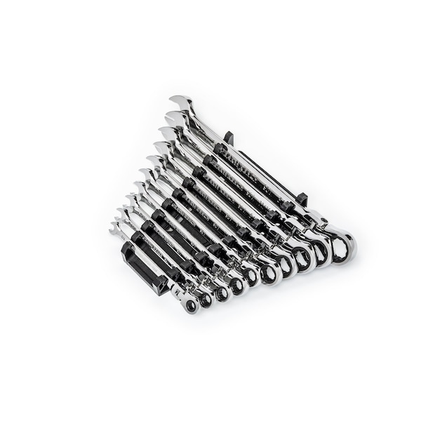 10 Piece 90-Tooth 12 Point Flex Head Ratcheting Combination SAE Wrench Set