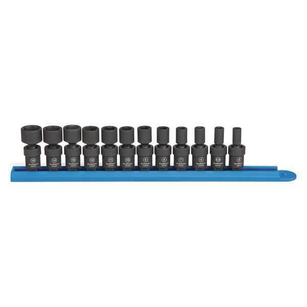 (12) 1/4" Drive 6 Point Metric Universal Impact Socket Set