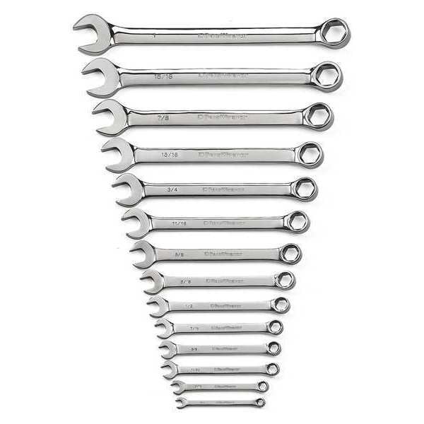 (14) Combination Wrench Set: (1) 1/4", (1) 5/16", (1) 11/32", (1) 3/8", (1) 7/16", (1) 1/2", (1) 9/16", (1) 5/8", (1) 11/16", (1) 3/4", (1) 13/16", (1) 7/8", (1) 15/16", (1) 1"