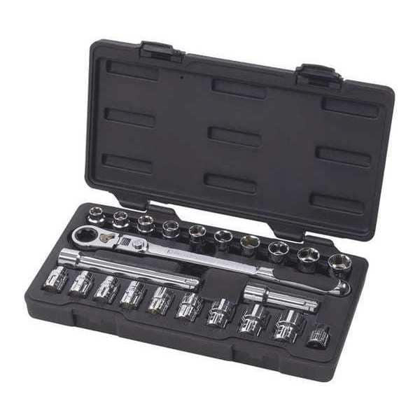 23 Pc Sae/Metric Xl Ratchet Set, Standard Socket Count/Style (23) 6-Point, Standard Socket Style/Size 1/2 in, 10 mm, 11 mm, 11/16 in, 12 mm, 13 mm, 13/16 in, 14 mm, 15 mm, 16 mm, 17 mm, 18 mm, 19 mm, 3/4 in, 5/8 in, 7/16 in, 7/8 in, 9/16 in, Standard 6-Point: 3/8 in, Drive Size 3/8 in, Alloy Steel, Impact Rated No