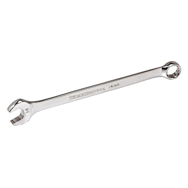 Wr comb fp 12pt 28mm, Alloy Steel, Full Polish, Head Size 28 mm, Overall Length 16 in, Head Offset Angle 15 Degrees , Opening Angle (Deg.) 15 Degrees , Offset, Head Thickness 1/2 in, 11/16 in, Metric, Rounded