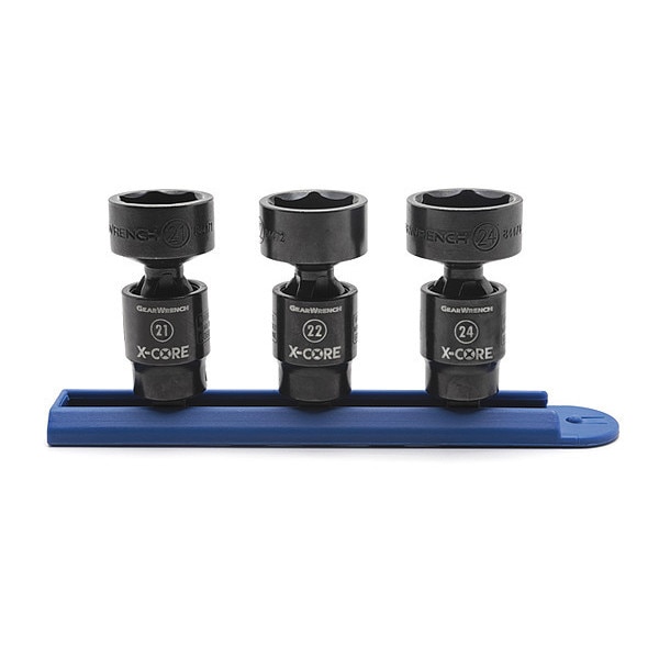 3 Piece 3/8" Drive 6 Point Standard X-Core Pinless Universal Impact Metric Socket Set