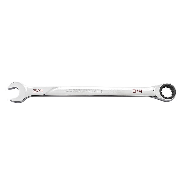 Combination Ratcheting Wrench,3/4 in., Alloy Steel, Chrome, Head Size 3/4 in, Overall Length 12 in, Head Offset Angle 0 Degrees , Opening Angle (Deg.) 15 Degrees , Standard, Head Thickness 3/8 in, 7/16 in, SAE, Rounded
