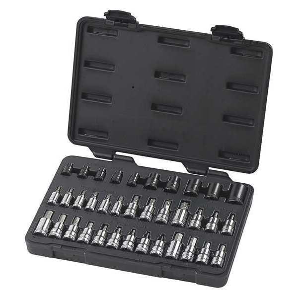 36 Piece 1/4", 3/8" & 1/2" Drive Standard Hex, E-Torx & Torx Bit SAE/Metric Socket Set