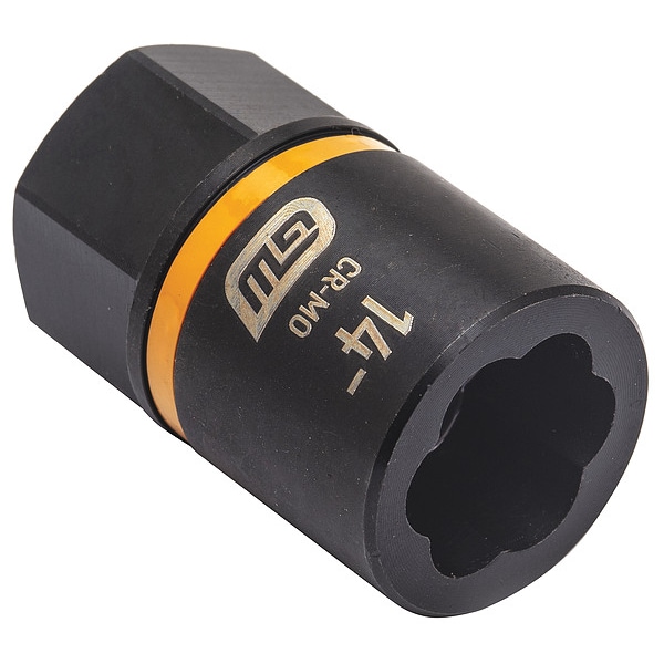 Bolt Extractor, Socket Size 14 mm, 7-Point, Steel, Black Oxide, Standard, Impact, Drive Size 3/8 in, Metric, Impact Rated Yes, Bolt Clearance 1 in, Standards B107.110