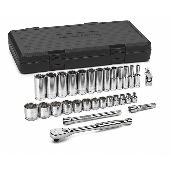 3/8" Drive Mechanic Socket Set, SAE, 30 pcs, Set Skt Std/Dp Sae 3/8Dr 12Pt