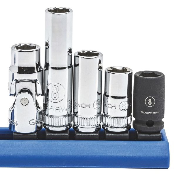 5 Piece 1/4" Drive 6 Point 8mm Socket Set