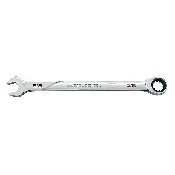 Combination Ratcheting Wrench,5/8 in., Alloy Steel, Chrome, Head Size 5/8 in, Overall Length 10 1/4 in, Head Offset Angle 0 Degrees , Opening Angle (Deg.) 15 Degrees , Standard, Head Thickness 5/16 in, 7/16 in, SAE, Rounded