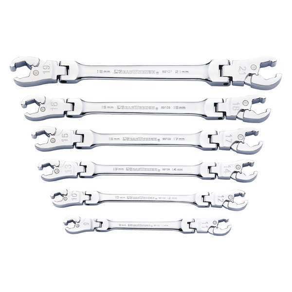 6 Piece Ratcheting Flex Head Flare Nut Metric Wrench Set