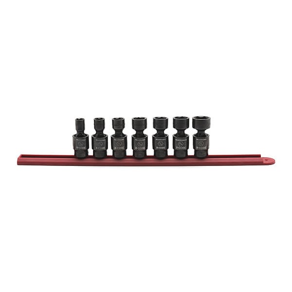 (7) 3/8" Drive 6 Point Standard X-Core Painless Universal Impact SAE Socket Set, Socket Rail