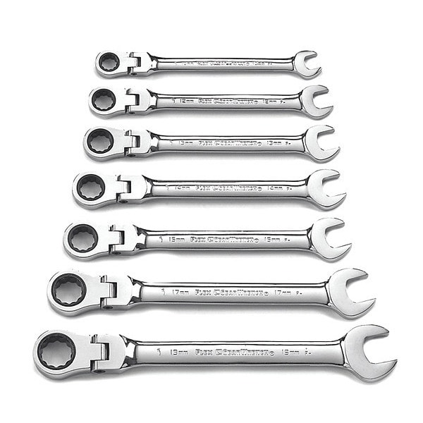 (7) Flex Head Ratcheting Combination Wrenches: 10mm, 12mm, 13mm, 14mm, 15mm, 17mm, 19mm