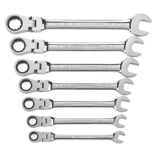 (7) Flex Head Ratcheting Combination Wrenches: 3/8", 7/16", 1/2", 9/16", 5/8", 11/16", 3/4"