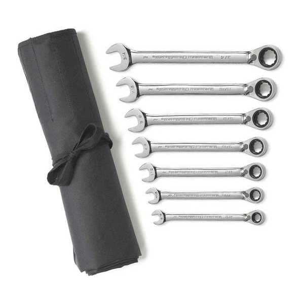 7 Piece 72-Tooth 12 Point Reversible Ratcheting Combination SAE Wrench Set with Tool Roll