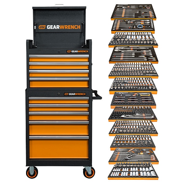 Mechanic Tool Set, Tool Storage Type Rolling Tool Cabinet, Measurement Type Metric/SAE, Drive Size 1/4 in; 3/8 in; 1/2 in, Number of Pieces 791, Pliers Included No, Screwdrivers, Keys, and Bits Included Yes, Sockets, Drive Tools, and Accessories Included Yes, Wrenches Included (6) Point Combination Wrenches, Striking and Struck Tools Included No, Cutting Tools Included No, Plumbing Tools Included No, Electrical and Telecom Tools Included No, HVAC Tools Included No