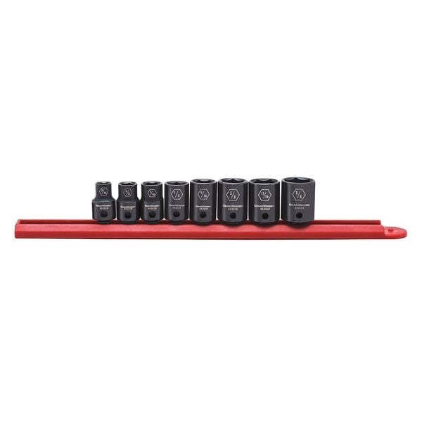 Impact Socket Set,3/8 In. D,6pt.,SAE,8pcs.