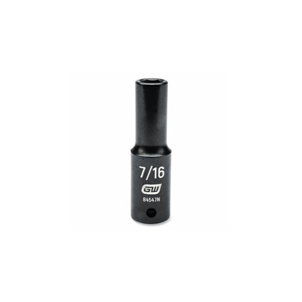 Impact Socket, 1/2 in Drive Size, 7/16 in Opening Size, 6-point, Deep Length