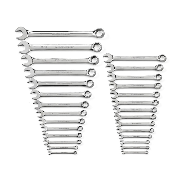 Sae/Metric Full Polish Combination Wrench Set, 28 Pc. 6 Point