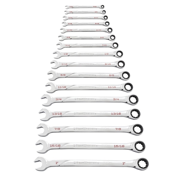 (16) 120XP Universal Spline XL Ratcheting Combination Wrenches: 7/32", 1/4", 9/32", 5/16", 11/32", 3/8", 7/16", 1/2", 9/16", 5/8", 11/16", 3/4", 13/16", 7/8", 15/16", 1"; Wrench Rack