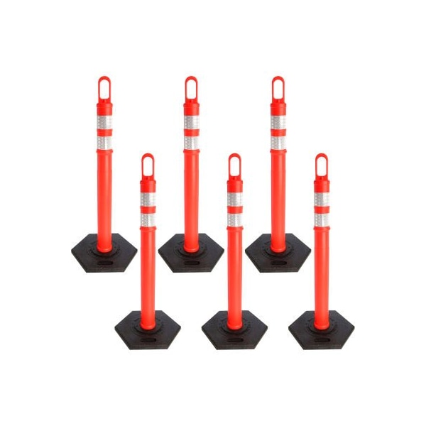 Mr. Chain Delineator with 2 Reflective Stripes, 47-1/2inH, 4in Dia., LDPE, Traffic Orange, 6/Pack