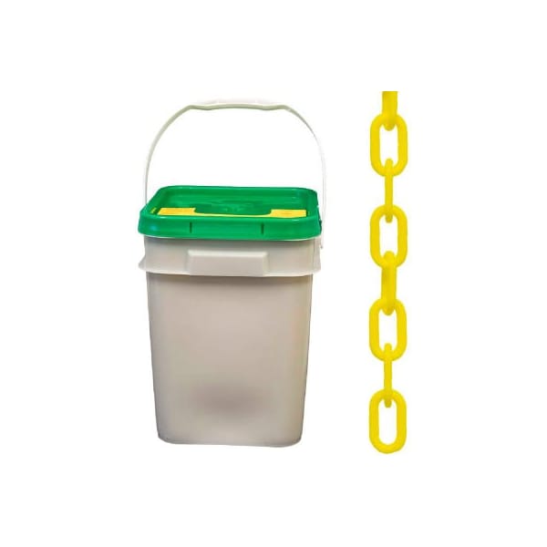 Mr. Chain Heavy Duty Plastic Chain Barrier In A Pail, 2inx120'L, Yellow