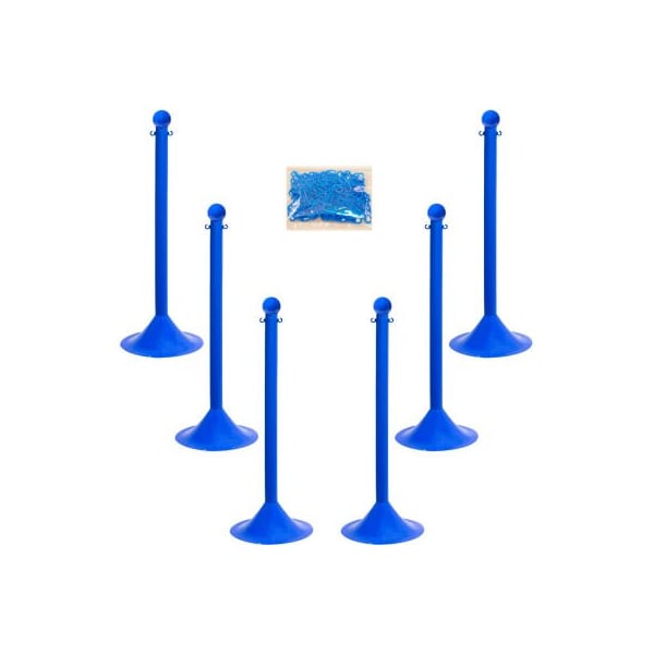 Mr. Chain Light Duty Plastic Stanchion Kit With 2inx50'L Chain, 41inH, Blue, 6 Pack