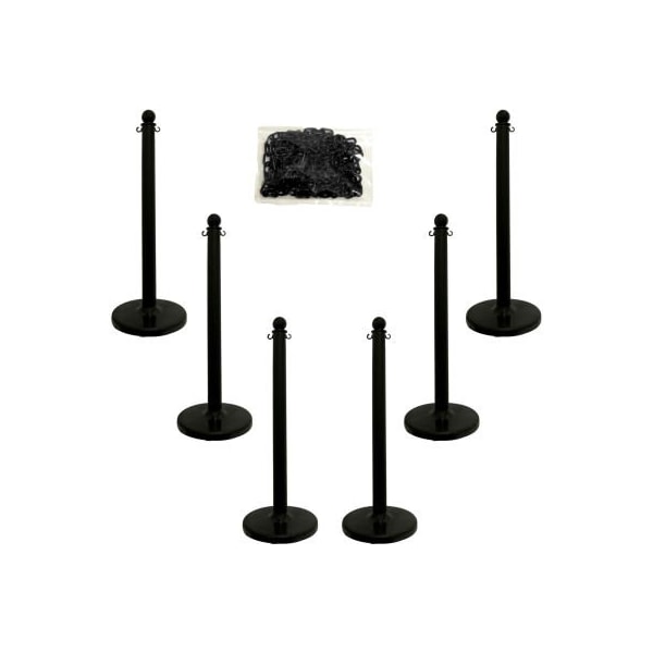 Mr. Chain Medium Duty Plastic Stanchion Kit With 2inx50'L Chain, 40inH, Black, 6 Pack