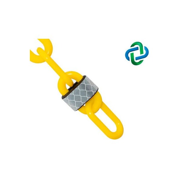 Product information: highly visible and impact resistant for use in any environment. Ideal for driveways, parking lots on roadways, construction sites and more chain links are encased in yellow outdoor, retro-reflective material 3m perfect for night time use and dot-c2 compliant, link of chain is roughly 2 inches in length, reflective piece is .75 of an inch creates and effective visual barrier when paired with our reflective options for stanchions, ground poles, delineators or traffic cones features & benefits: reflective links are placed every 15 inches for optimum reflectivity uv protection - lifetime guarantee with polyone smartbatch color and additive solutions our color formulation is unparalleled