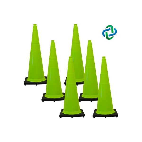 Mr Chain Traffic Cone, 36in, Safety Green, 6/Pack