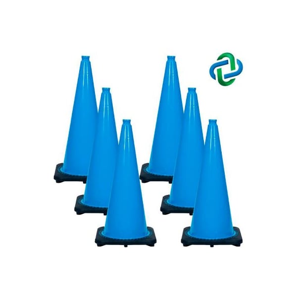 Traffic Cone, PVC, 28 in Height, 7 lb, Sky Blue