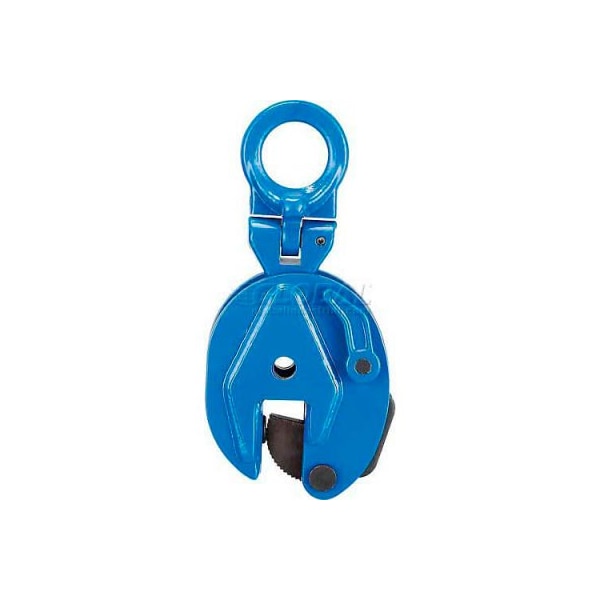 Vertical plate clamp heavy-duty plate clamp is designed to vertically lift and turn plate material from all positions. Lifting clamp includes an articulating shackle for versatile, smooth operation and automatic serrated hardened steel pads and cams. Clamp features a safety mechanism that ensures the clamp does not slip when lifting force is applied or when load is lowered. Drop-forged carbon steel case offers maximum strength. Meets asme b30.20 specifications. Note: not designed to use on stainless steel or aluminum plates. For use only with materials with a surface hardness below hrc 30 hb 300, brinel 1300.