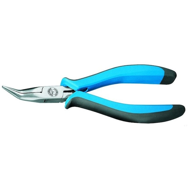 Long Nose Electronic Pliers; Extra Long, Flat-Round Tapered Jaws, Angled 45 Degrees; for Bending and Straightening Jobs; Smooth-Ground Gripping Faces; With Opening Spring