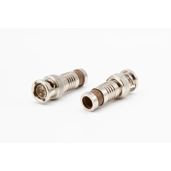Coaxial Connector, Gender Male, Product Type Connector, Color Silver, Installation Method Compression, Compatible Coaxial Cable Type RG-59, Maximum Frequency 1 GHz, Maximum Impedance 75 ohm, Connector Type BNC, Finish Nickel-Plated, Compatible Cable Fire Rating Plenum, Package Quantity 10