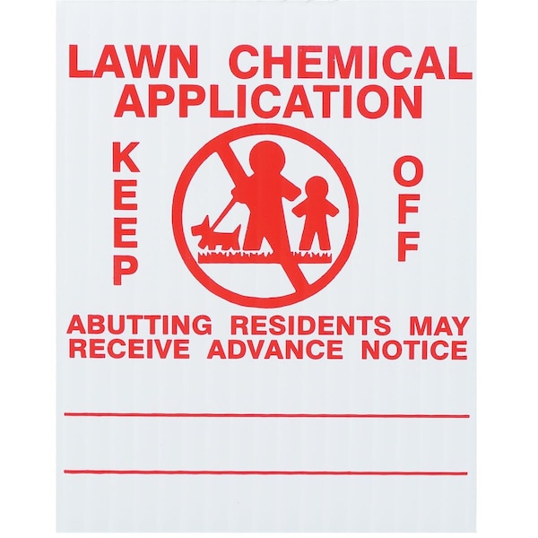 These reusable signs are handy for flagging lawns after chemical application. Signs are screen printed on durable, corrugated plastic and include a 16"L white, bendable PVC stake. Signs are weatherproof and hold up to repeated use. Ohio state specific sign meets requirements for text (type and size) and material; space is provided for your company name and phone number. Red text on white background. 4"W x 5"H. Pack of 25 signs and stakes.