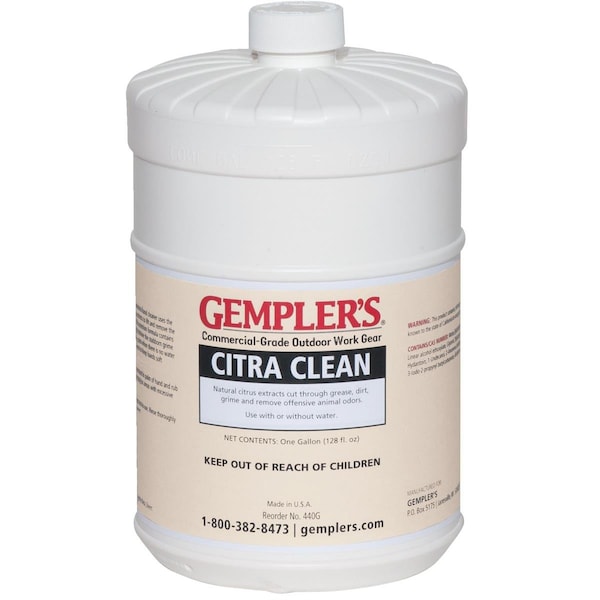 This liquid, industrial-strength, waterless hand cleaner is safe to use and gentle on hands because it contains no petroleum solvents. Volcanic ash grit adds gentle scrubbing strength and the odor-removing power comes from the all-natural extract of orange peels, known as d-limonene. Includes natural lanolin and other conditioning and soothing agents to keep your skin comfortable. Orange-peel fragrance. Can be used with or without water. One-gallon container inverts to fit most standard wall mount dispensers. USDA accepted. Dispenser Pump not included. Optional accessories are sold separately: steel wall rack (Item # FP) which stores 1-gal. Citra Clean container at a convenient height, Dispenser Pump (Item # 175180).