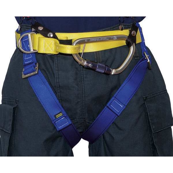Rescue Harness, Back D-Ring No, Class II, Color Blue, Yellow, Front D-Ring No, Hardware Material Aluminum, Steel, Includes Aluminum Carabiner, Leg Strap Buckles Pass-Through, Number of Load Bearing Attachment Points 2, Number of Pieces 1, Number of Positioning Attachment Points 0, Shoulder Strap Buckles None, Side D-Rings No, Standards NFPA 1893, Waist Buckle D-Ring, Snap Hook, Waist Size (Maximum) 56 in, Waist Size (Minimum) 44 in, Webbing Material Nylon