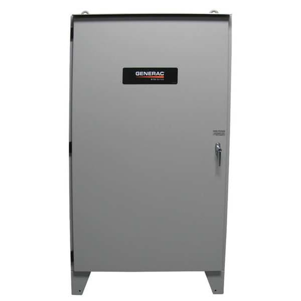 Automatic Transfer Switch, Phase Three, Current Rating 800 A, Service Rated Transfer Switch No, Rated Voltage 120/208V AC, Maximum Wattage 150,000 W, Enclosure Material Steel, NEMA Enclosure Rating 3R, Lockable Yes, Compatible with Series RTS, Overall Height 66 in, Overall Width 36 in, Overall Depth 21 in, Automatic Exerciser Yes, Manual Override Yes, Re-Transfer Time Delay 15 sec, Exercise Cycle Duration 12 min, Color Gray, Compatible with Brand Generac, Exercise Cycle Interval 7 day