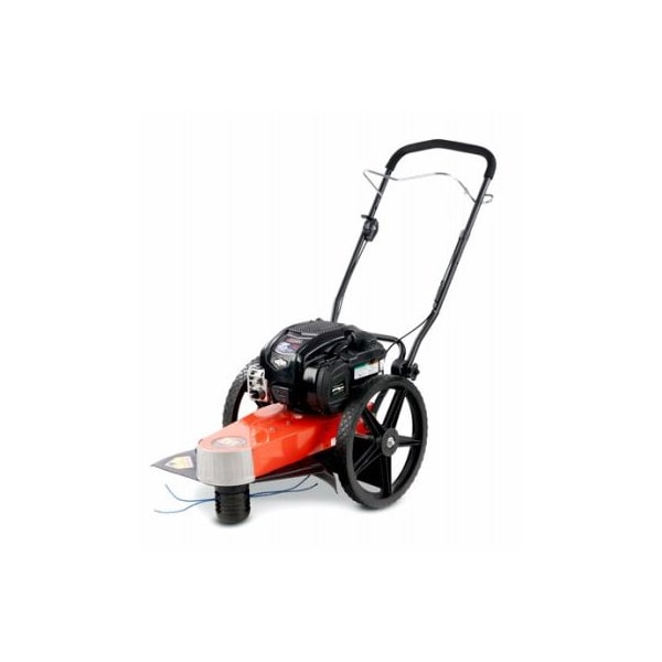 DR engine with 9.70 foot-pounds of torque. The frame is mounted with extra high 16 wheels for easier maneuvering. The PRO cuts a 22 swath has 5 adjustable mowing heights 1.5 to 3.5 and offers ergonomic handlebars for stress free mowing. An offset frame design allows the PRO to trim right up against foundations fence lines and other obstacles with precise control. The front is fortified with a cast aluminum nose plate that protects the machine against damage from collisions.