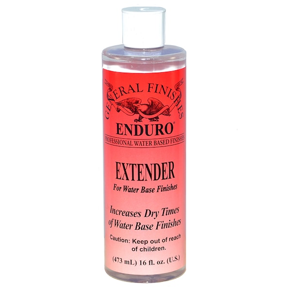 Extender is a wetting additive used to improve flow and leveling, and increase the drying time of any water-based stain, topcoat or glaze, which is helpful in hot, dry conditions.