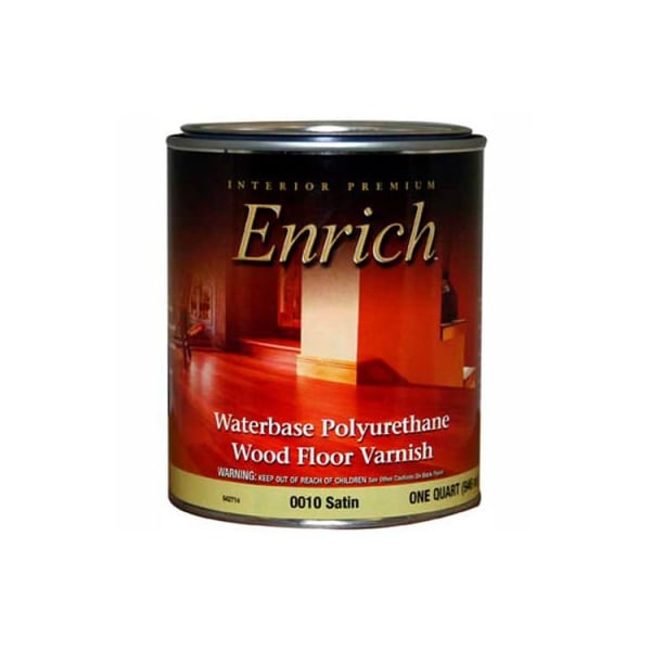 Enrich varnish & floor finish, waterbase, satin finish, quart - 542714 enrich waterbase floor finish is a premium interior water-base polyurethane wood floor varnish. Resists abrasion, chipping, and cracking. Highly durable formula will not dull. Apply to floors or woodwork. New or previously stained or varnished wood floors. Not intended for exterior use.