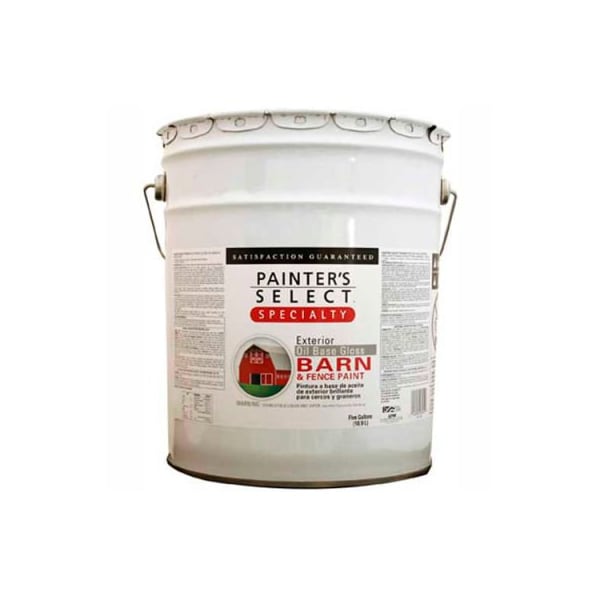 Painter's select oil gloss barn & fence paint, gloss finish, white, 5-gallon - 798413 painter's select specialty oil gloss barn & fence is a superior exterior coating. This product is fade resistant. Harmless to livestock. Soap and water clean-up. All barns, fences, sheds, and other exterior ranch and industrial buildings.