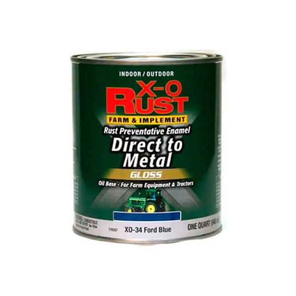 X-o rust brush-on enamel, gloss, royal blue, matches ford blue, quart - 776557 x-o rust farm & implement direct to metal enamel is a great paint for any metal machinery, equipment, tools, tanks, and more. Features excellent color retention. Water resistant and prevents rust. For metal substrates only. Interior or exterior metal surfaces, such as file cabinets, fencing, metal, drains, piping, and tools. Not recommended for roofs.
