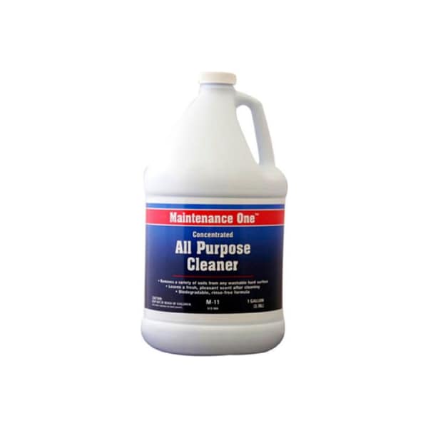 Maintenance one concentrated all purpose cleaner, 1 gallon bottle, 1/case - 513066 maintenance one concentrated all purpose cleaner is the solution to all of your cleaning needs. Removes a variety of soils from washable hard surface, leaves fresh, pleasant scent, biodegradable, rinse-free formula. For routine cleaning of any painted surface, sealed floors, concrete floors, kitchens, heavy machinery, automobiles, and most hard surfaces.