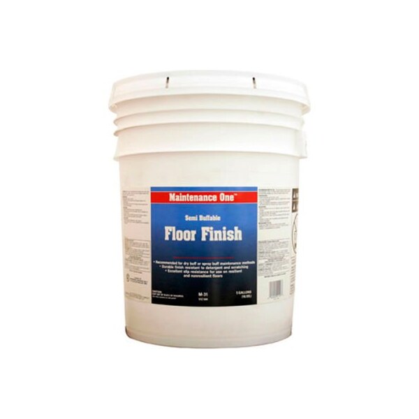 Maintenance one semi-buffable floor finish, 5 gallon pail, 1/case - 512544 maintenance one semi-buffable floor finish is recommended for dry buff or spray buff maintenance methods. Durable finish resistant to detergent and scratching. Excellent slip resistance for use on resilient and non-resilient floors. Ul registered. All types of resilient flooring such as vinyl, vinyl composite, linoleum, asphalt and rubber tile, as well as sealed surfaces such as terrazzo and concrete, wood and cork.