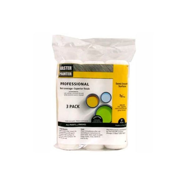 Master painter 9" professional roller cover, 3/8" nap, woven, semi smooth, 3 pack - 149299 master painter professional 5-ply woven roller cover is fabricated to meet the standards of every painter, and are manufactured under strict quality control procedures. The 3/8" semi-smooth nap is perfect for smooth to lightly textured surfaces such as walls. The 9" length is a great size for any project. Master painter makes painting easy by providing professional one coat results indoors and out. Manufactured with the finest quality blended fibers for maximum paint pick-up and release with all quality paints. Best used on smooth to lightly textured surfaces such as walls. Works well with both oil and latex based paints.