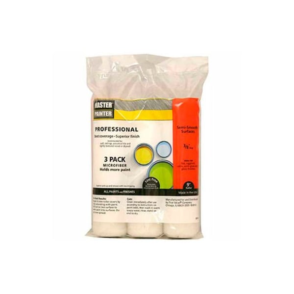 Master painter 9" professional roller cover, 3/8" nap, woven, semi smooth, 3 pack - 190915 master painter professional roller covers are designed with woven microfiber fabric and a phenolic core to provide superior pick-up and release for a smooth lint-free finish with maximum coverage. The 3/8" semi-smooth nap is perfect for smooth to lightly textured surfaces such as walls. The 9" length is a great size for any project. Minimizes drips while covering a larger area. Master painter makes painting easy by providing professional one coat results indoors and out. Manufactured with the finest quality blended fibers for maximum paint pick-up and release with all quality paints. Best used on smooth to lightly textured surfaces such as walls. Works well with both oil and latex based paints.