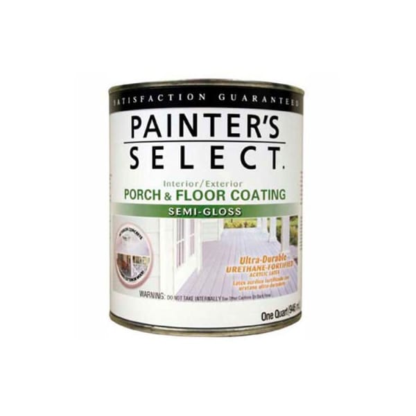 Painter's select urethane fortified semi-gloss porch & floor coating, white, quart - 112174 painter's select urethane fortified semi-gloss porch & floor coating is a low odor, low voc paint that provides exceptional coverage. High hiding formula. Stain resistant and washable. Superior fade resistance. Mildew resistant finish. Can be used on both interior and exterior surfaces. Previously painted or properly prepared and primed interior surfaces. Perfect for kitchens, bathrooms, and areas that need constant washing.