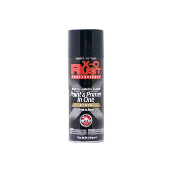 X-o rust 12 oz. Aerosol rust preventative paint & primer in one, charleston green, gloss - 125843 x-o rust professional rust preventative paint & primer in one spray is a superior interior/exterior rust preventative gloss enamel paint and primer in one. Direct to metal, spray at any angle, comfort spray tip. Provides exceptional durability. Rust-preventative coating for all interior and exterior metal surfaces. Also for wood, masonry and handcrafts. Do not use on styrofoam, ceramic tiles or marble.