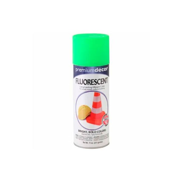 Premium dcor fluorescent fast drying enamel 12 oz. Aerosol can, glo green, flat - 641399 premium dcor fluorescent spray is a superior interior/exterior flat, fluorescent, fast drying enamel. Spray at any angle, comfort spray tip. Fast drying and lasts longer. For marking and crafts. Also can be used on wood, metal, furniture, tools, handcrafts, and other paintable surfaces. Do not use on styrofoam, ceramic tiles, or marble.