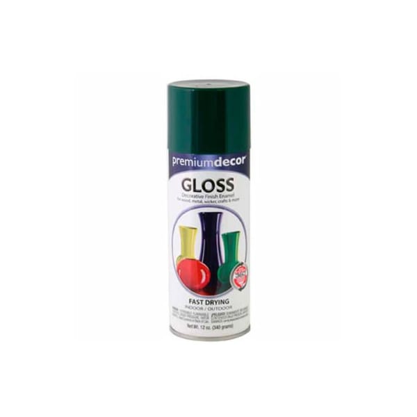 Premium dcor decorative gloss enamel 12 oz. Aerosol can, hunter green - 792793 premium dcor decorative enamel is a superior interior/exterior decorative gloss enamel spray. Spray at any angle, comfort spray tip. Fast drying and lasts longer. For interior or exterior wood, metal, furniture, wicker crafts and other paintable surfaces. Do not use on styrofoam, ceramic tiles or marble.