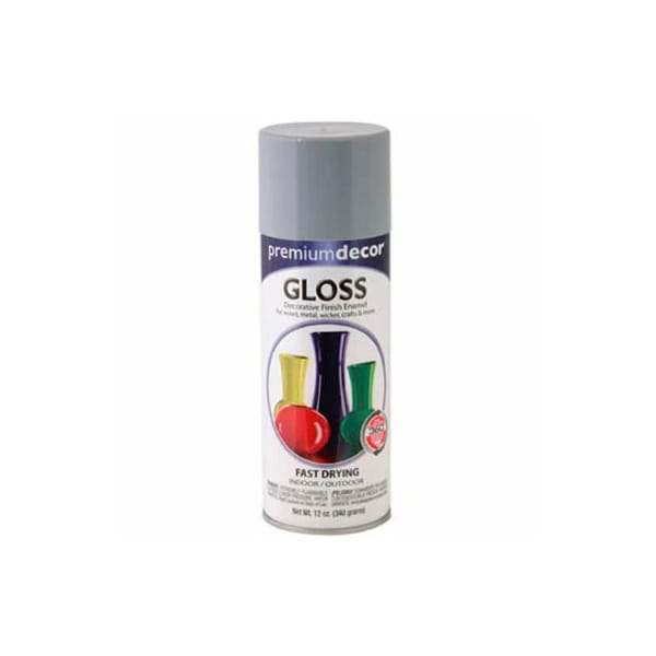 Premium dcor decorative gloss enamel 12 oz. Aerosol can, pewter gray - 793227 premium dcor decorative enamel is a superior interior/exterior decorative gloss enamel spray. Spray at any angle, comfort spray tip. Fast drying and lasts longer. For interior or exterior wood, metal, furniture, wicker crafts and other paintable surfaces. Do not use on styrofoam, ceramic tiles or marble.